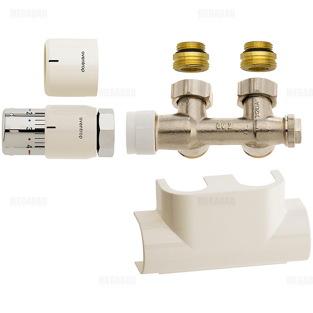 Oventrop Anschluss-Set Eckform für Badheizkörper mit Mittelanschluss, weiß = Art. Oventrop Zubehör Set für Heizstrahler für Badezimmer, mit thermostat Uni SH Multiblock T-ForAmazon.