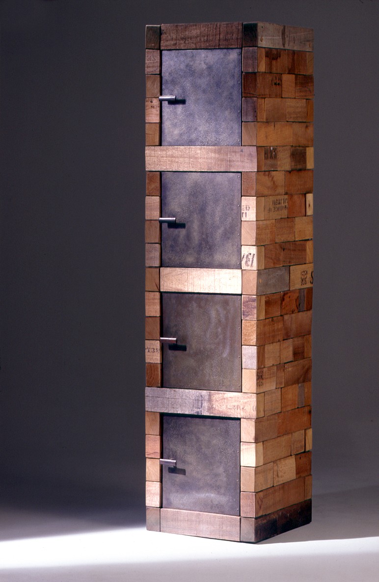Bild: Gemauerte Massivholzküche, Säulenschrank und drehbaren Innenzylinder Massivholzküche in Kernahorn, mit einem zylindrisch rundem Schrank mit . Wenn man sich vorstellt: ein gemauerter Schrank mit Holztüren. Denn bei rechtzeitiger Planung lässt sich Platz sparen, wenn statt gemauerter Trennwände gleich raumteilende Schränke vorgesehen werden.